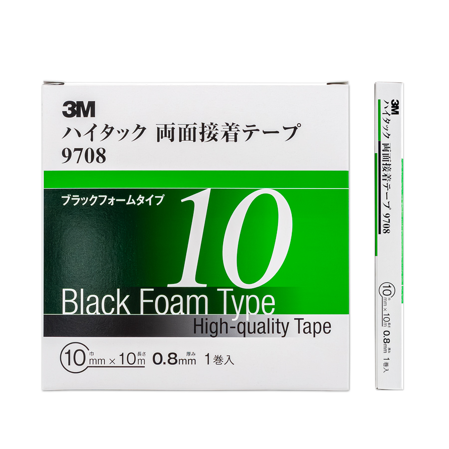 スリーエム ハイタック両面接着テープ 9708 10mm×10m(厚み0.8mm、ブラックフォームタイプ)