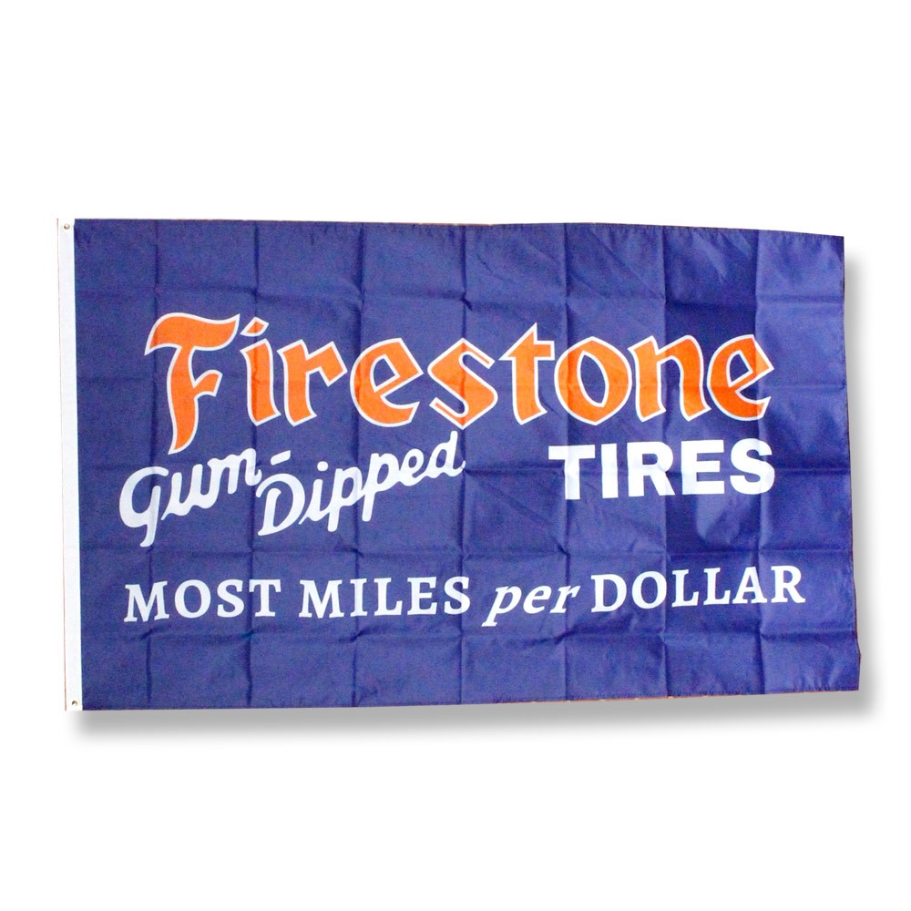 アメリカンガレージの演出に最適な大型フラッグ「FIRE STONE TIRES」 (ファイヤーストーンタイヤ)が入荷です!