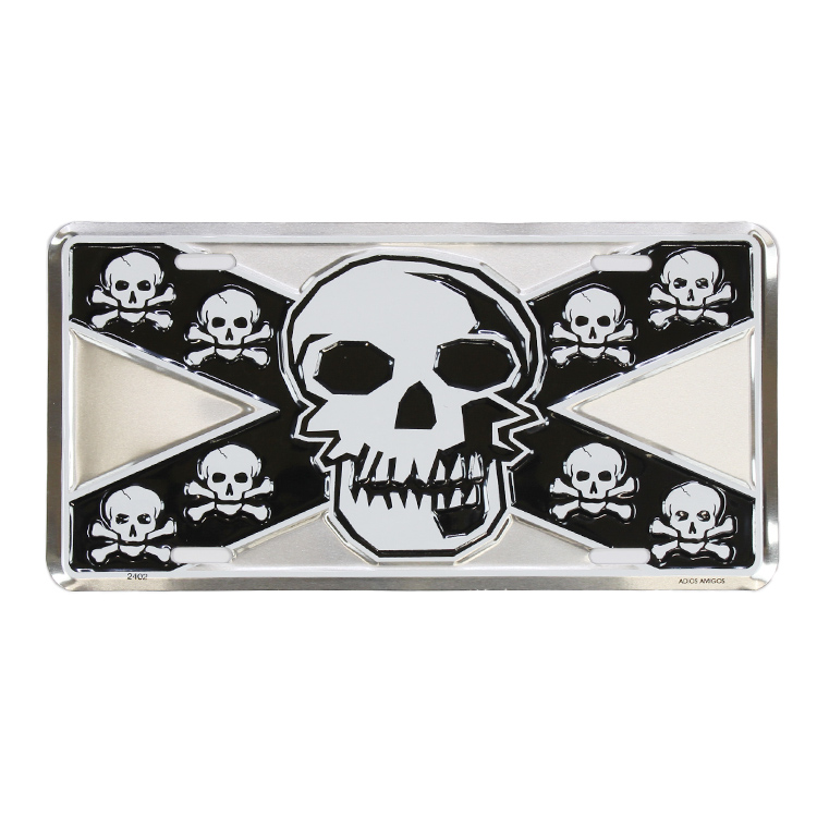CMプレート スカル 縦15.3×横30.3cm ナンバープレート型 インテリア 看板 アルミ製 アメリカン雑貨