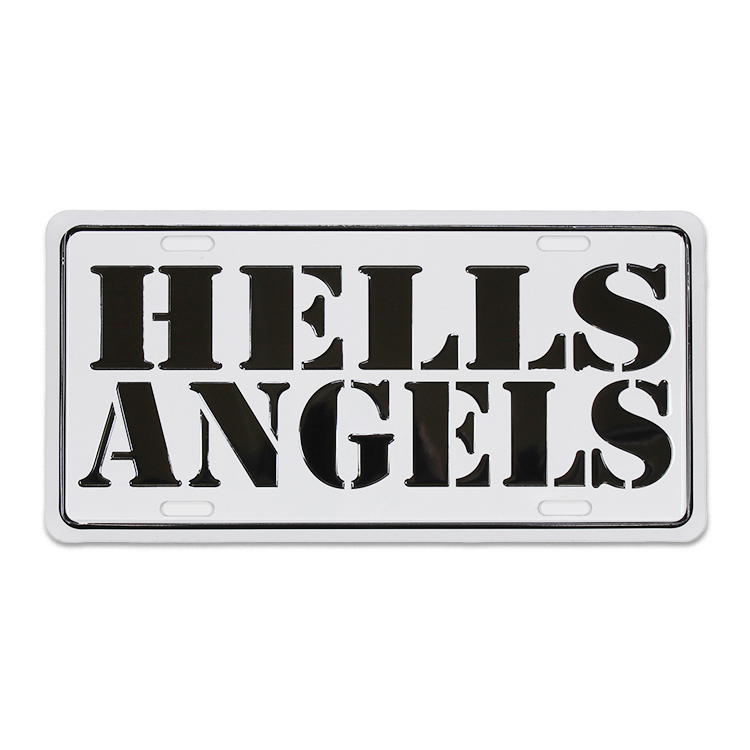 CMプレート HELLS ANGELS 縦15.3×横30.3cm ナンバープレート型 インテリア 看板 アルミ製 アメリカン雑貨