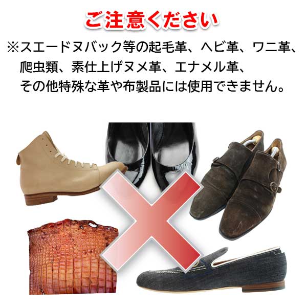 ・スエードヌバック等の起毛革、ヘビ革、ワニ革、爬虫類、素仕上げヌメ革、エナメル革、その他、特殊な革や布製品には使用できません。