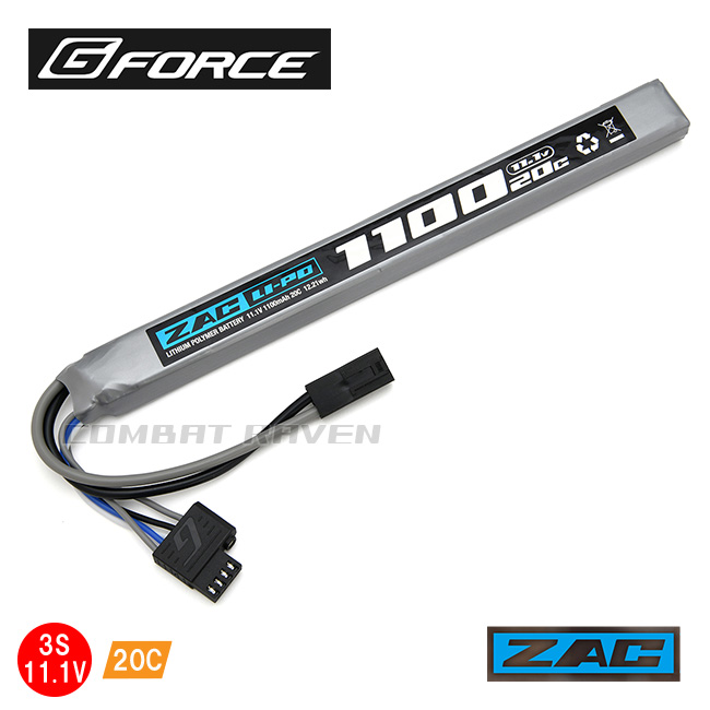 【G-FORCE】ZAC LiPo 11.1V 1100mAh カスタムガン用 AK対応型 ロングタイプ/電動エアガン/リポ/ZAC254/512541〈*0105-0047〉