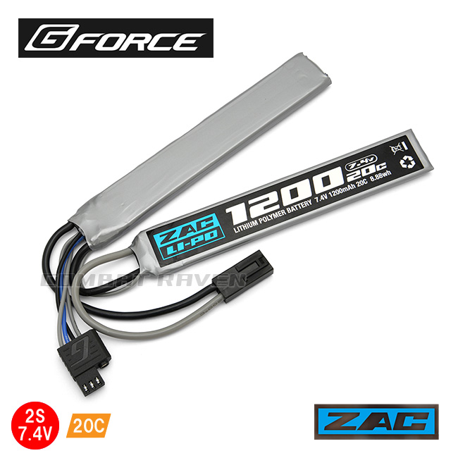 【G-FORCE】ZAC LiPo 7.4V 1200mAh SOPMOD対応 サドルパック/電動エアガン/リポ/ZAC256/512565〈*0105-0049〉