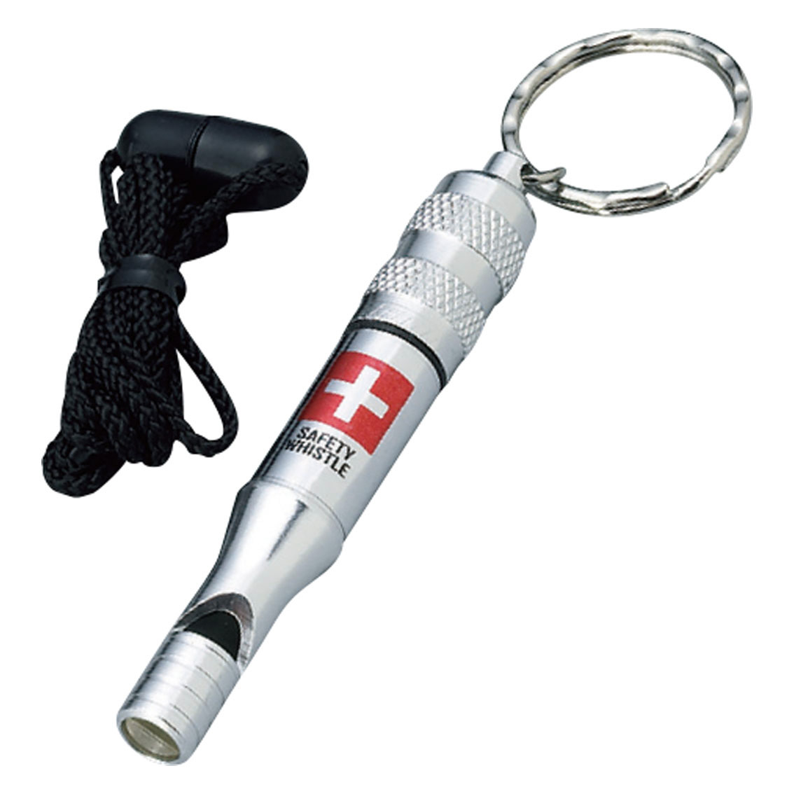 防犯だけでなく、災害時に居場所を伝えるのにも役立つホイッスル。身元確認用のIDカード付。