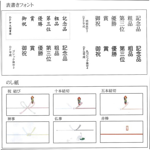 ショップ内で購入いただいた商品に熨斗(のし)だけをする場合の料金です。