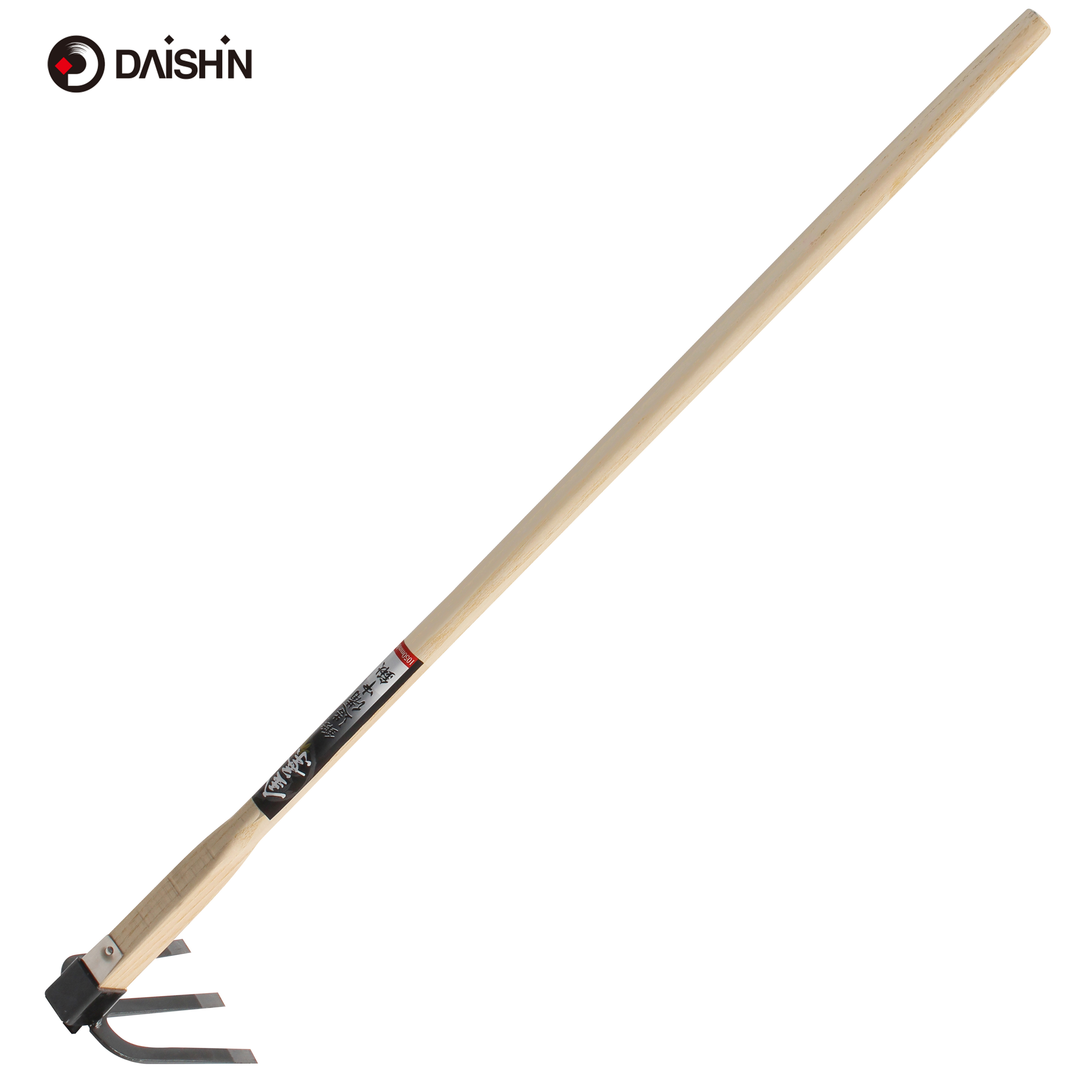 フォーク状の3本刃でしっかり土を砕き、石も効率的にかき出せる備中鍬。