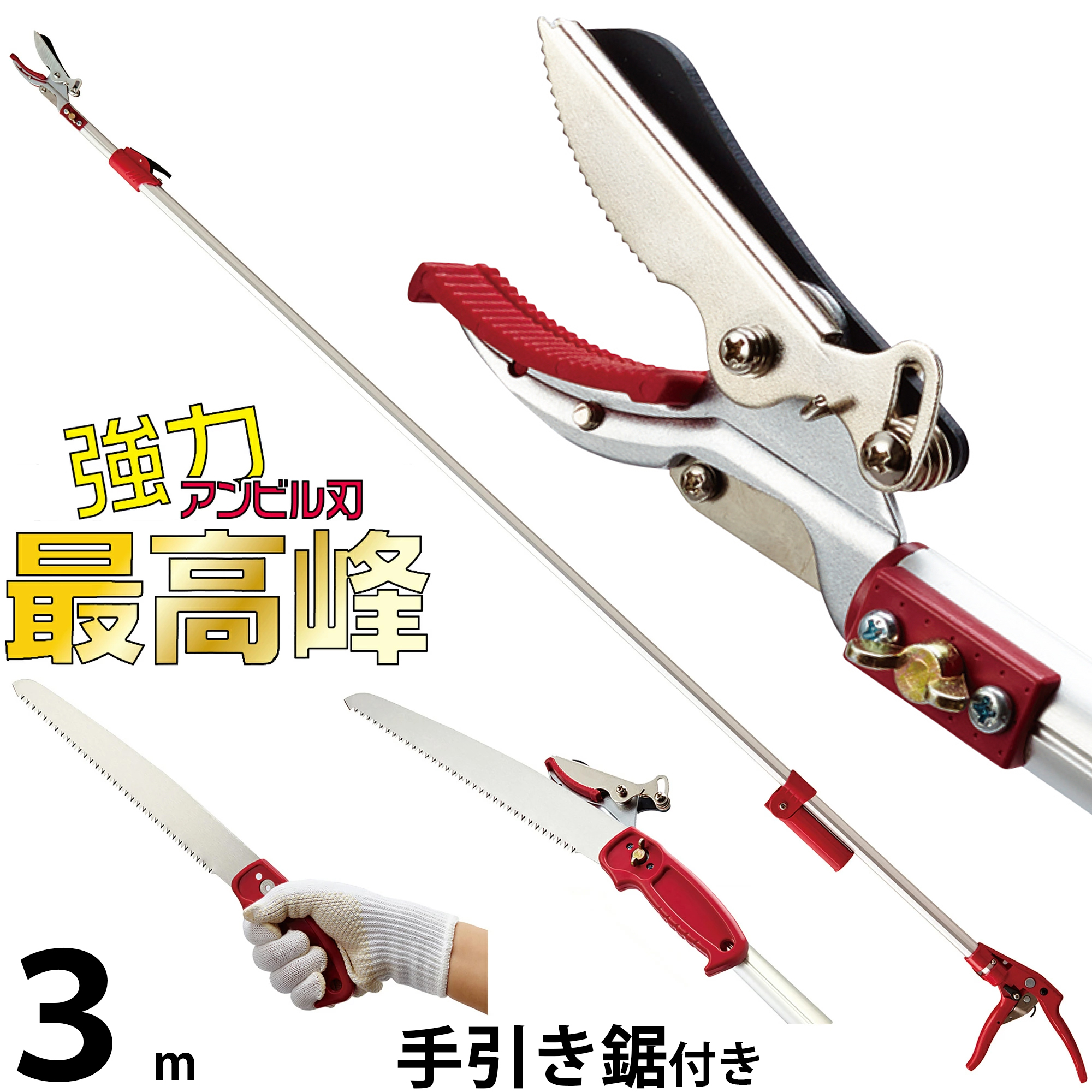 大進 高枝切りバサミ 3m 枝きりばさみ 枝きりはさみ 高枝切狭 高枝り切鋏 剪定ばさみ 太い枝 剪定鋏 軽量 軽い 大進 イージーカット たかえだきりばさみ