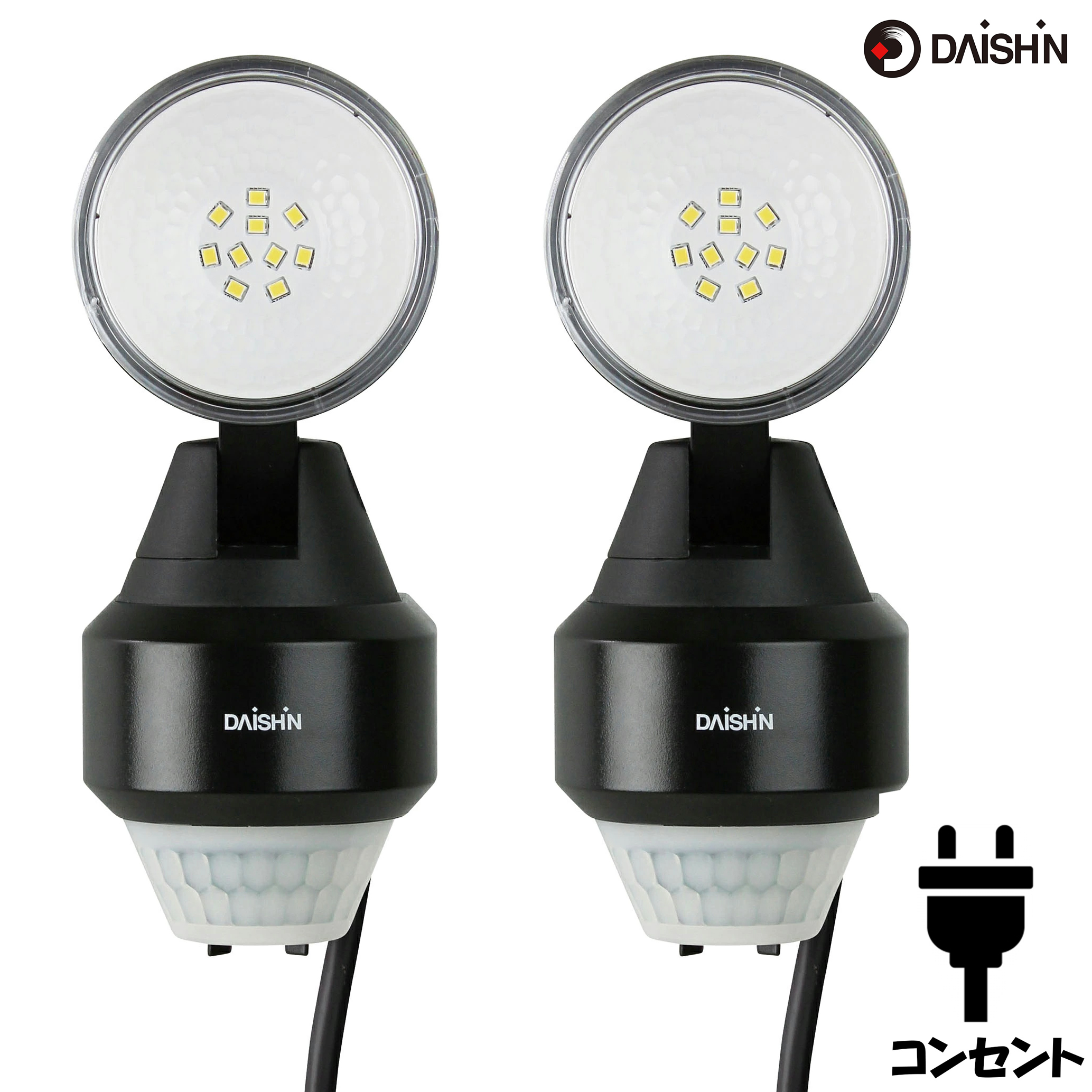 2個セット センサーライト 屋外 LED コンセント 人感 防犯ライト 明暗センサー 防雨 玄関 照明 明るい AC 100v 電源 外灯 駐車場