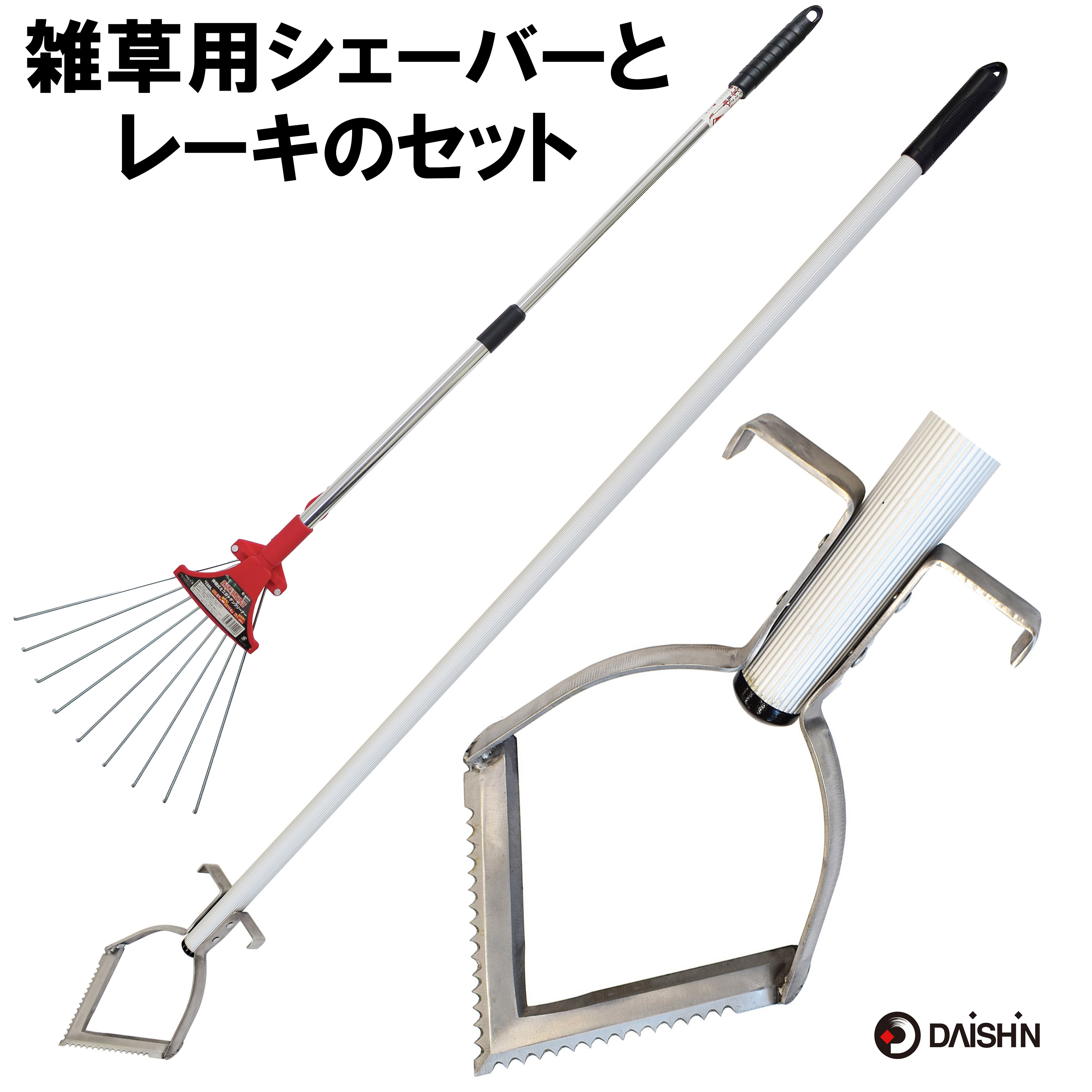 大進 雑草削る君 シェーバー と レーキのセット 草取り 道具 立ったまま 草刈りレーキ アルミ 庭 の クサカリ 草刈り 際刈り 軽量 草取り器 長柄 お手軽 草削り