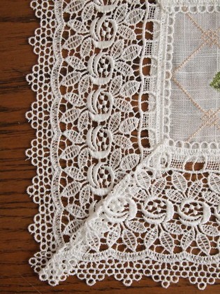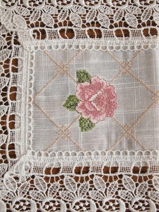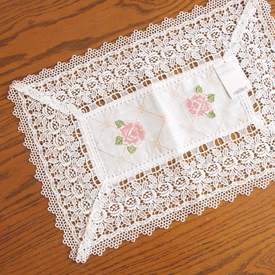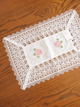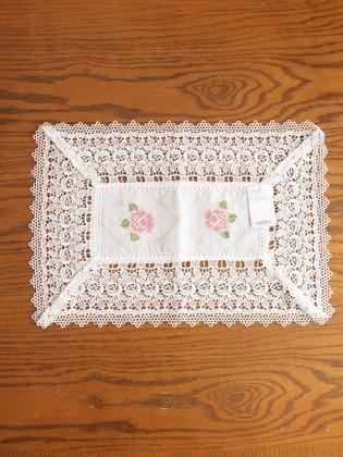 ローズの刺繍とローズのレース上品なテーブルセンター!