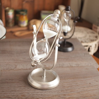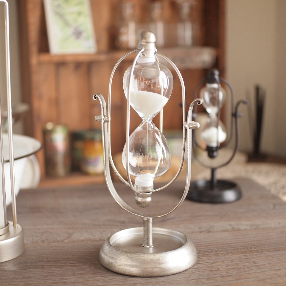 ノスタルジックな雰囲気を演出する、アンティーク調の砂時計アワーグラス・シルバーです。