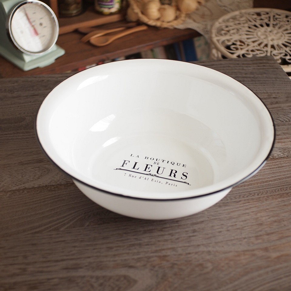 フルール ホーロー ホワイトボウルベイシン 洗面器 アンティーク調