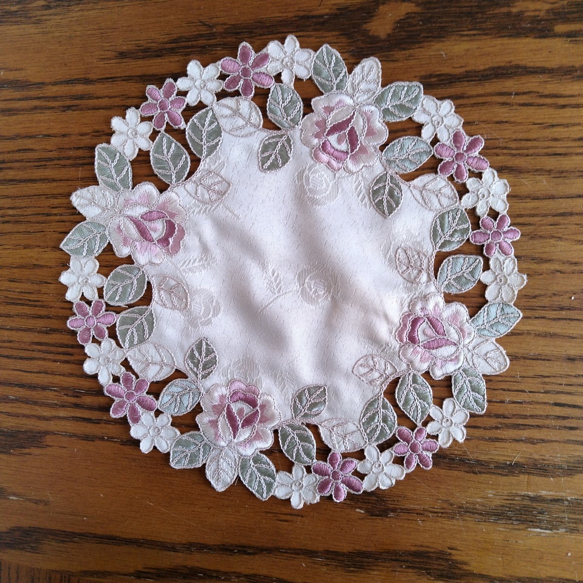 渋めのバラ刺しゅうを施された、上品なドイリー♪