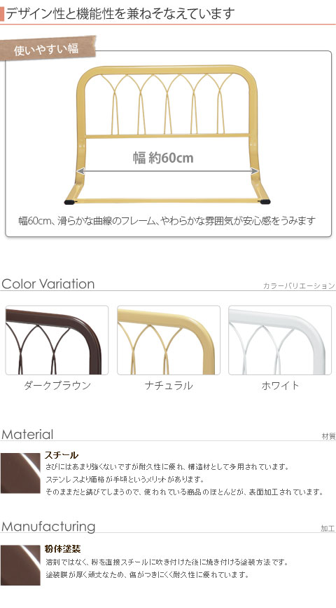ベッドフェンス サイドガード スチール ベッドガード-スポルテ 同色2個組 手すり ベット ガード ベビー 育児 快眠 安眠 寝具 布団ずれ防止