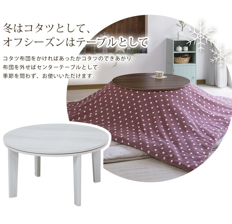 送料込み 送料無料 こたつ 円形 80cm テーブル カジュアル 木目調 コタツ こたつテーブル リバーシブル天板 丸 石英管ヒーター テーブル 木目調 リビングコタツローテーブル センターテーブル コンパクト おしゃれ 一人暮らし ナチュラル ホワイト ブラウン アベルSE80丸