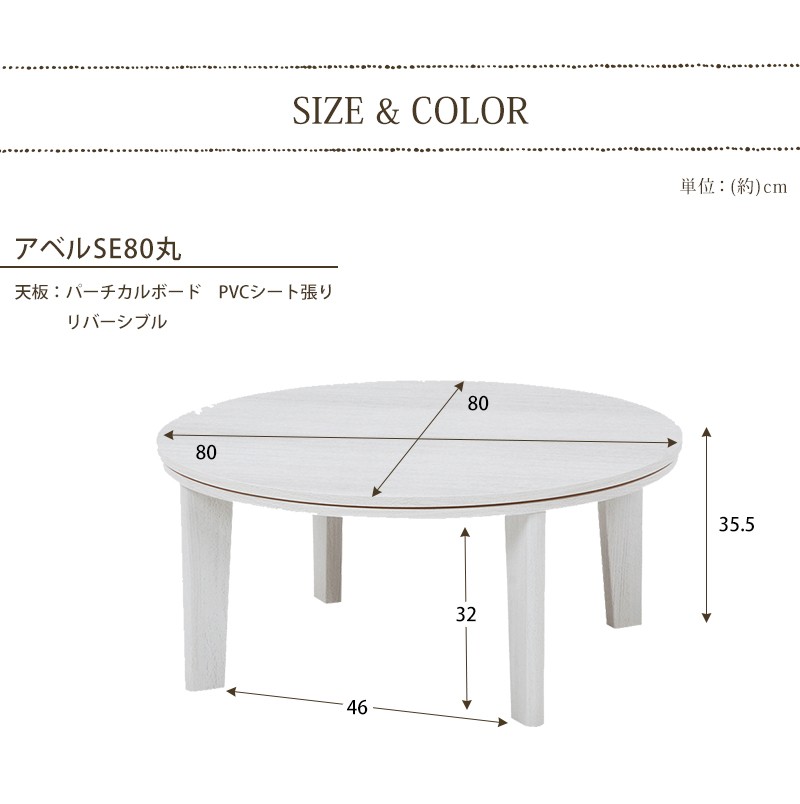 こたつ 円形 80cm コタツ こたつテーブル リバーシブル天板 丸 リビングコタツセンターテーブル ローテーブル アベルSE80丸