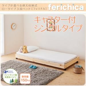 【商品名】タイプが選べる頑丈ロータイプ収納式3段ベッド fericica フェリチカ キャスター付シングルタイプ