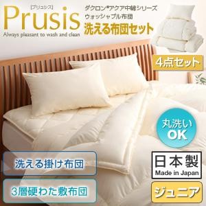 ダクロン(R)アクア中綿シリーズウォッシャブル布団【Prusis】プリュシス4点セット 洗える掛け布団 3層硬わた敷布団タイプ:ジュニア