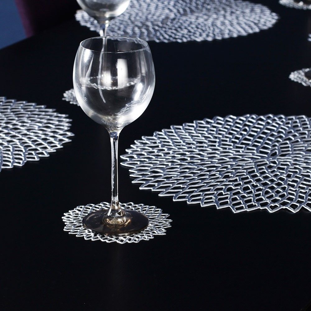 「チルウイッチ」はニューヨークを拠点に活動するデザインスタジオ。世界で初めてビニール織地を採用したテーブルマットが世界中で反響を呼び、テーブルの演出方法を一変させ、世界の一流ホテルやレストランに採用されるようになりました。「ダリア」はダリアの華をモチーフにしたデザインで、ダリアは大変人気があり、テーブルを華やかに彩ってくれます。