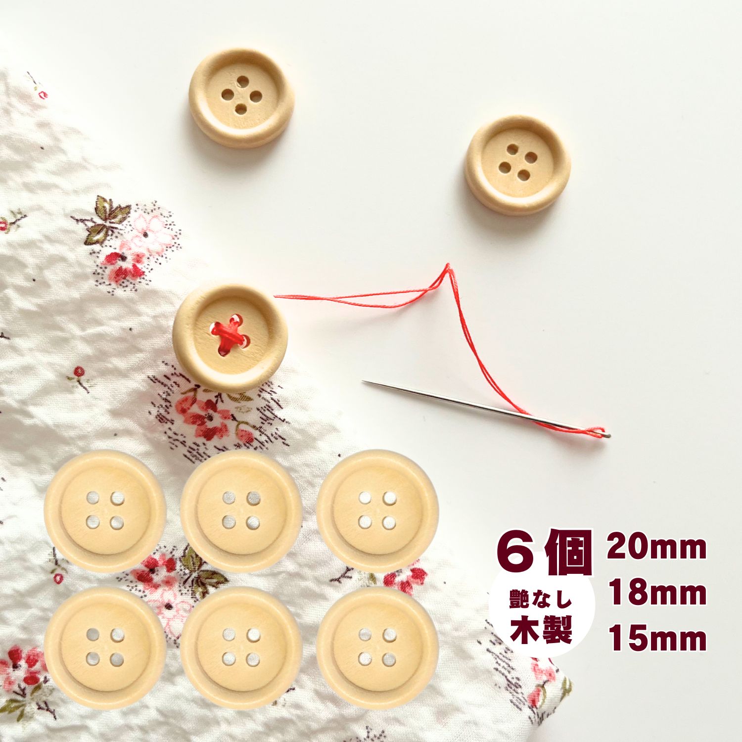 haoa 木製 ボタン 6個セット 直径15mm 18mm 20mm 4つ穴ボタン 純木製 ジャケットボタン 艶なし 洋裁 洋服 手芸 クラフト ウッドボタン 釦 ぼたん ベージュ