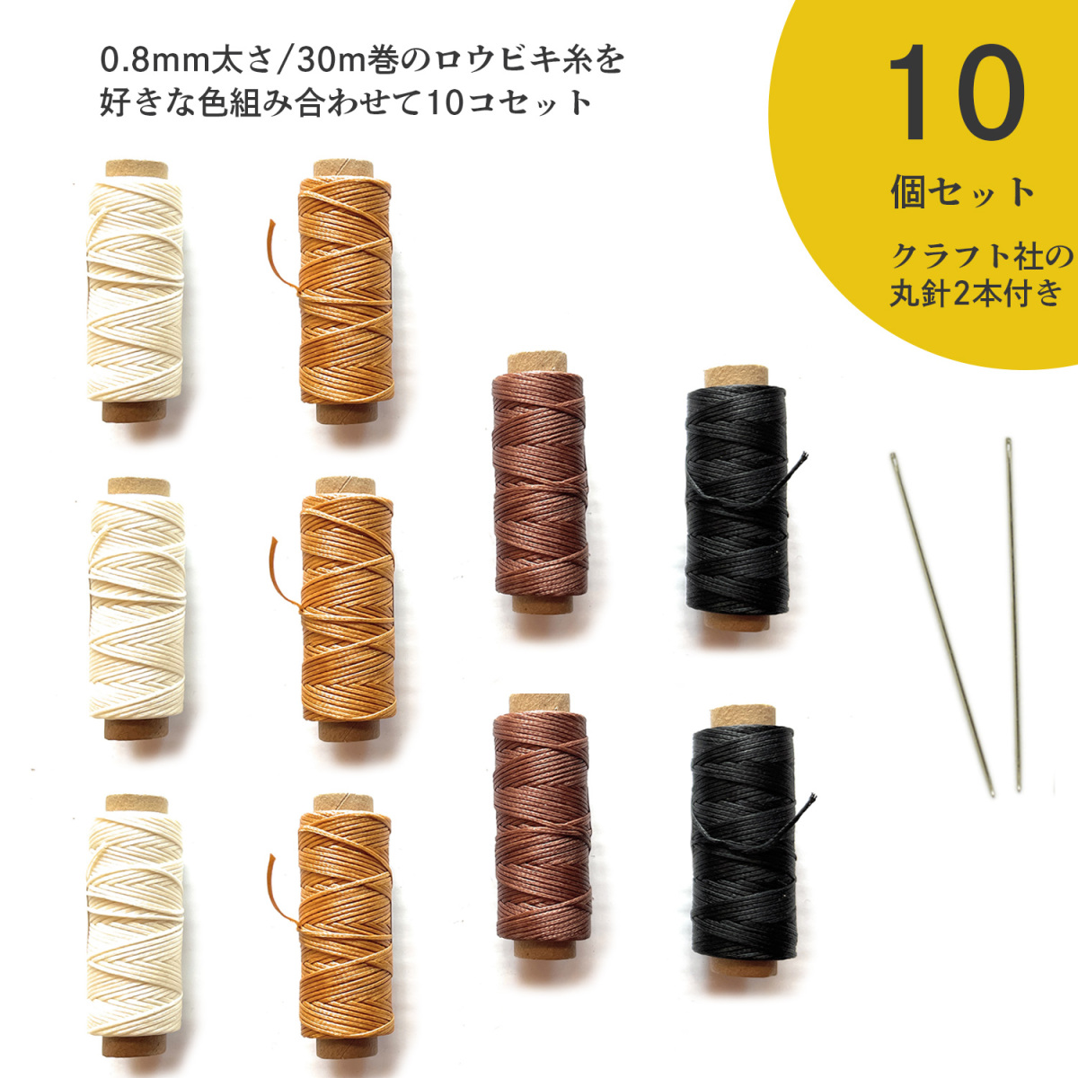 haoa レザークラフト 手縫糸 30m 10巻きセット+クラフト社の丸針2本付き ロウビキ糸 蝋引き糸 ロウ引き糸 糸 ワックスコード