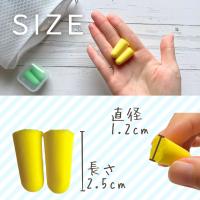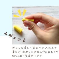 使い方:親指と人差し指で耳栓をつまんで潰します。耳を少し持ち上げるようにして耳栓の先端の細い方から差し込みます。数秒指を押し当てて、耳栓が耳の穴の中で膨らむのを待ちます。柔らかいスポンジが耳の穴に合わせて膨らんだら装着完了です。