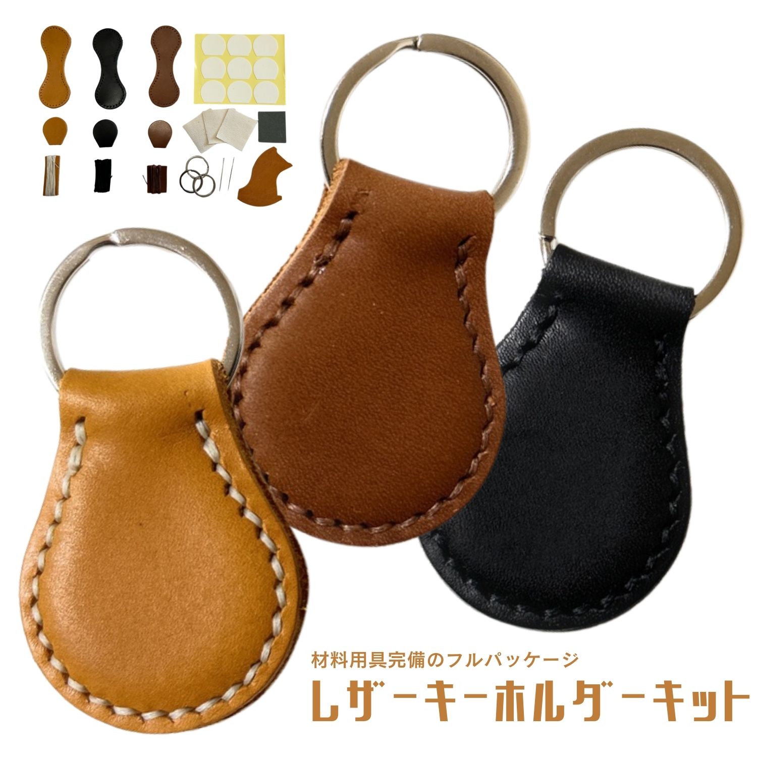 キーホルダーキット 材料用具完備のフルパッケージ キャメル ブラウン ブラック 3色セット 牛革 ハンドメイド 材料 レザークラフトキット 初心者さん向け