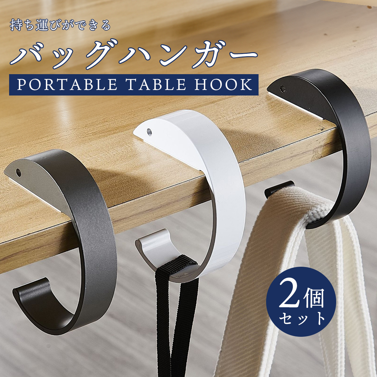 サッと取り出してテーブルやデスクに引っ掛けるだけで、