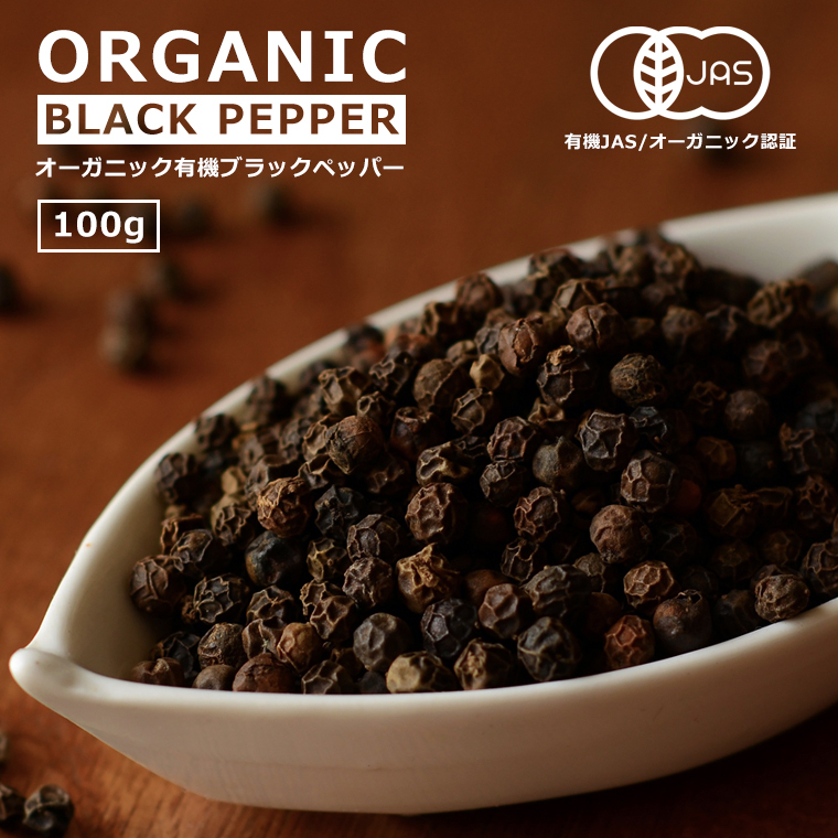 オーガニック ブラックペッパー ホール 100g 有機JAS認証 最高級 スリランカ産 ブラックペパー ホール 有機 オーガニック 黒胡椒 黒こしょう 無農薬 ギフト 贈り物 プレゼント スパイス