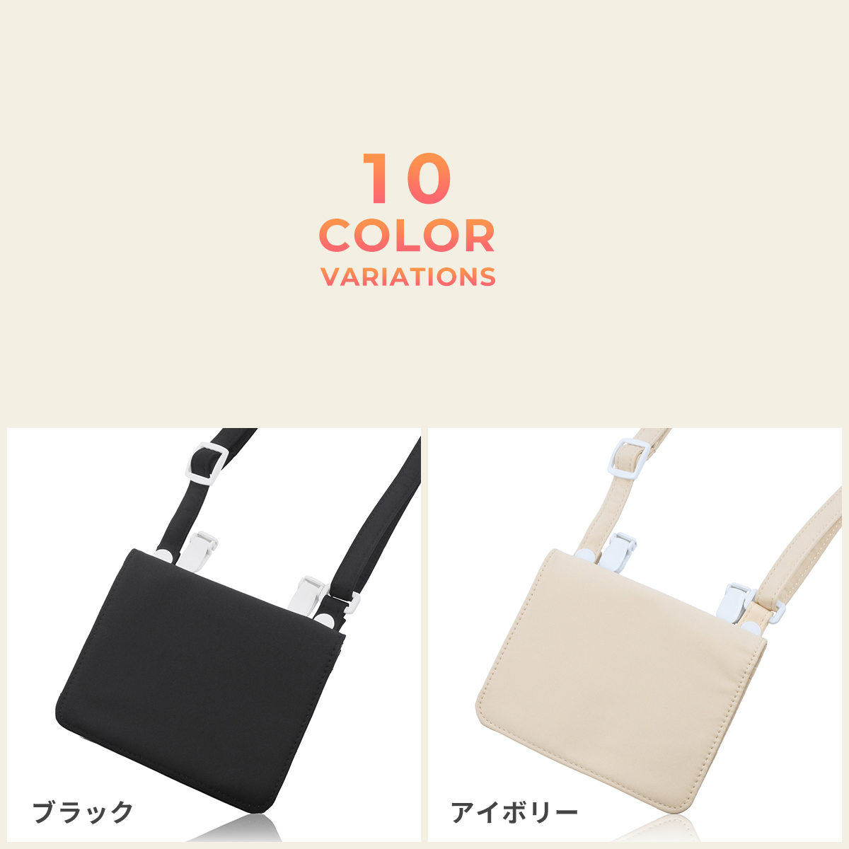 長さ調節が可能なショルダーストラップと、ズボンやスカートに挟めるクリップが付属した便利な2WAY仕様。