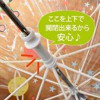 子ども用のかわいいキャラクターがプリントされた、ビニール製の傘です。