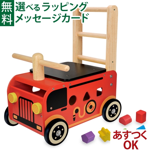 木のおもちゃ I'm TOY アイムトイ 手押し車 乗用玩具 ウォーカー&ライド 消防車 1歳 おもちゃ 知育玩具 入園 入学