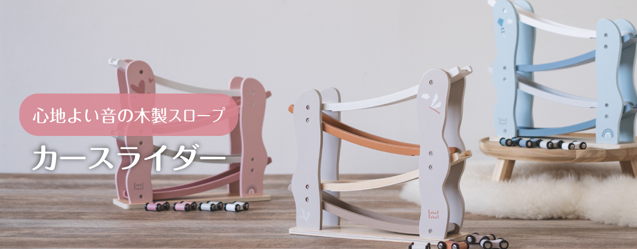ラテには「幸せの象徴」であるトンボ、ピンクにはハートとそれぞれのカラーのアクセントがプリントされており、優しいカラーリングは木のぬくもりをより一層暖かく感じられます。