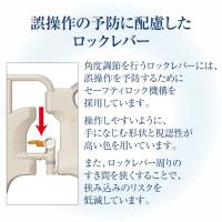120度まで開くスイングアーム(0°、30°、60°、90°、120°の5ヶ所で固定可能)。5段階調節と捕まりやすいアーム設計で起き上がりやすくなっています。