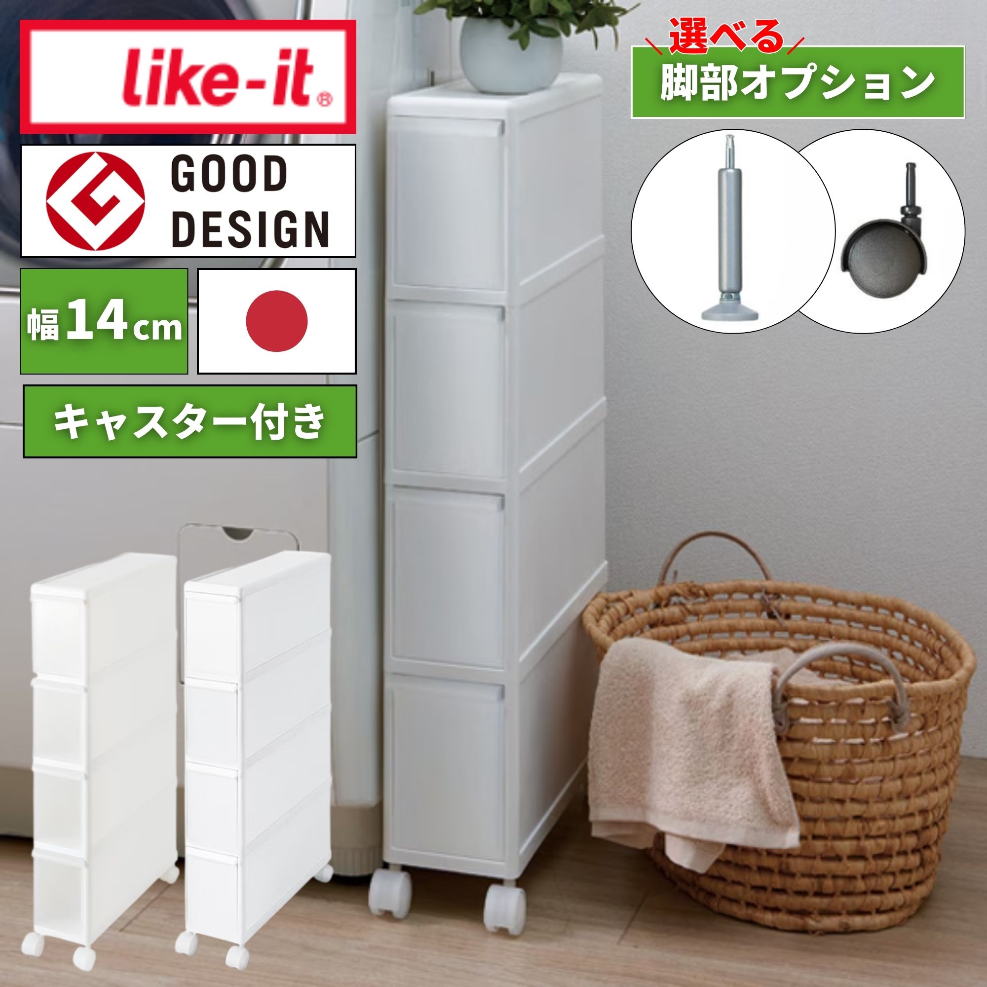 すきま収納 隙間収納 幅14cm ライクイット スリムストレージ 4段 キャスター付 日本製 like-it 引き出し キッチン ストッカー 洗面所 薄型 アジャスター FTS-4