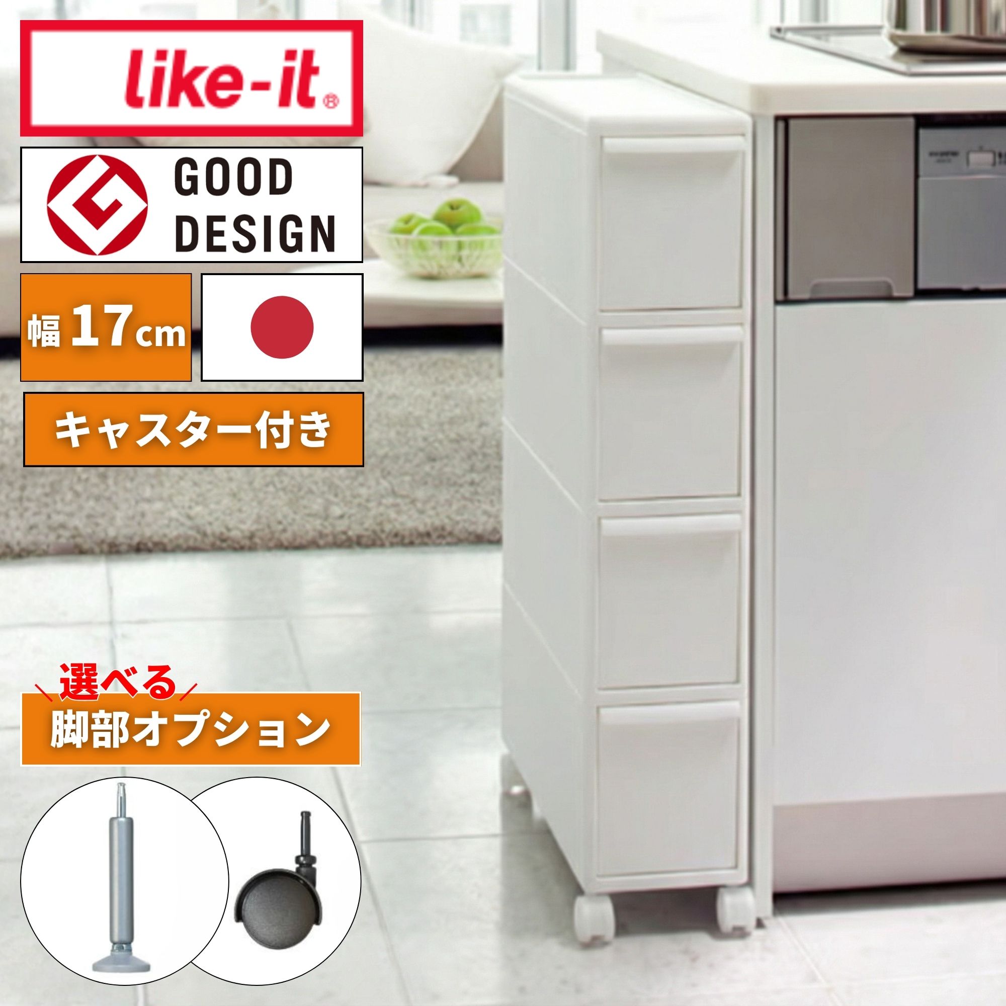 すきま収納 隙間収納 幅17cm ライクイット スリム ストレージ 4段 キャスター付 日本製 like-it 引き出し キッチンストッカー 洗面所 薄型 アジャスター TS-4