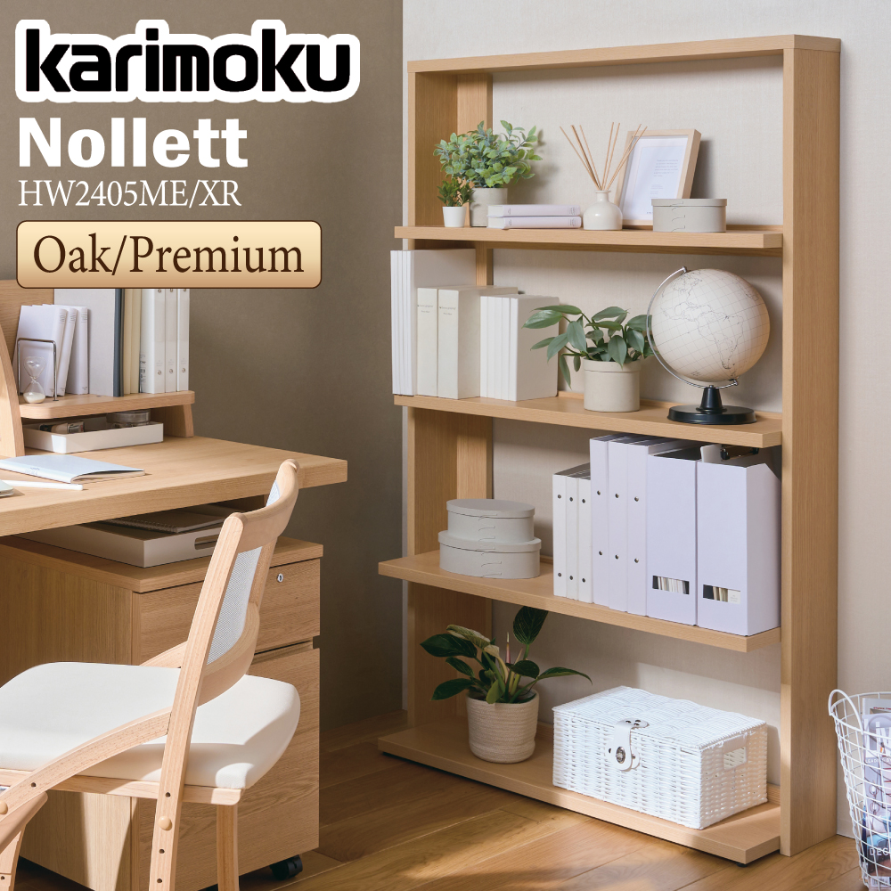 カリモク家具 HW2405 ME XR Nollett 書棚 幅90cm オーク ウォールナット 木製 天然木 日本製 正規品 karimoku ノルエット 本棚 シェルフ棚 スリム 大容量 薄型