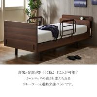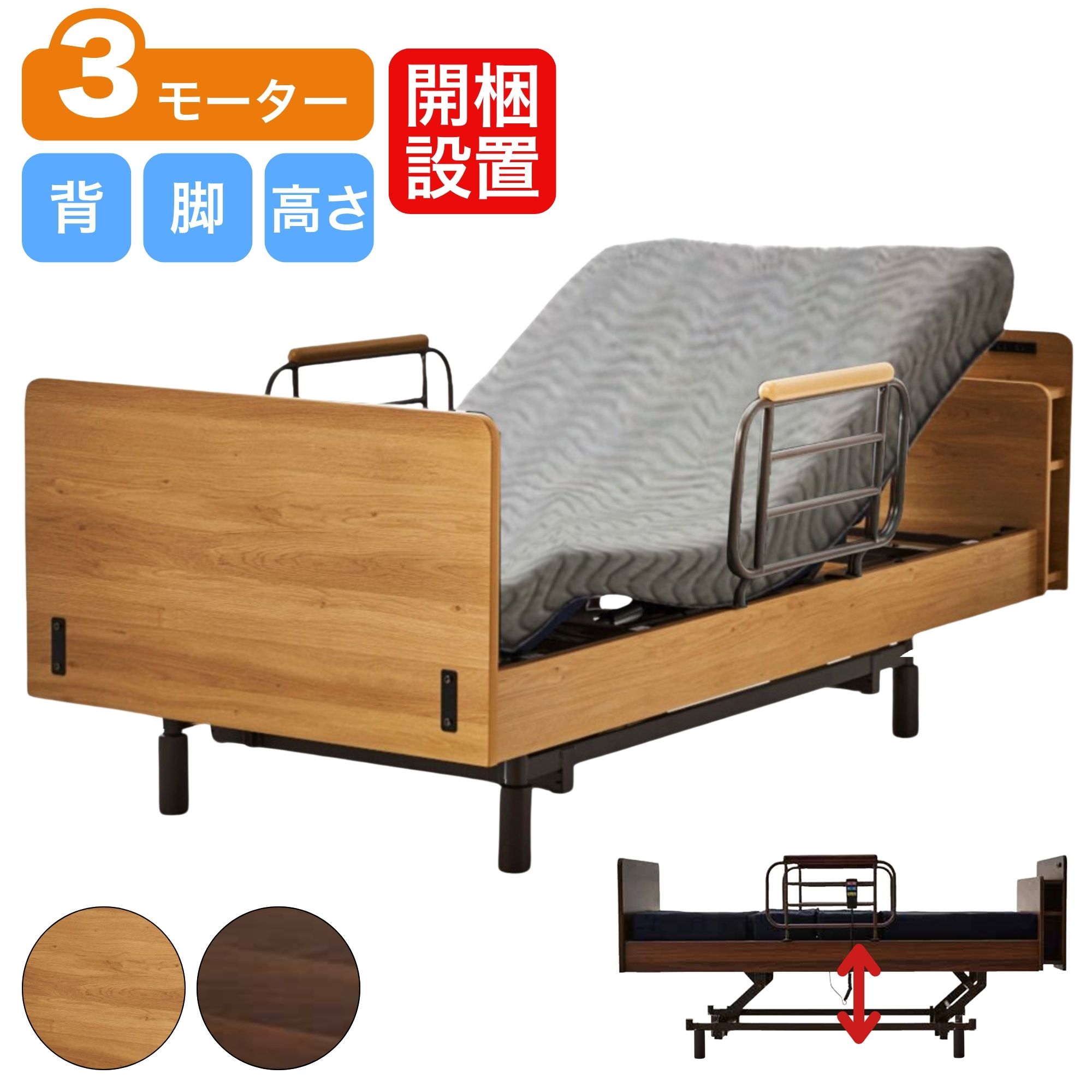 開梱設置付 電動ベッド 3モーター 介護ベッド カンタービレ シングル ポケットコイルマットレスセット 手すり付き 高さ調節 キャスター無 棚付き コンセント付