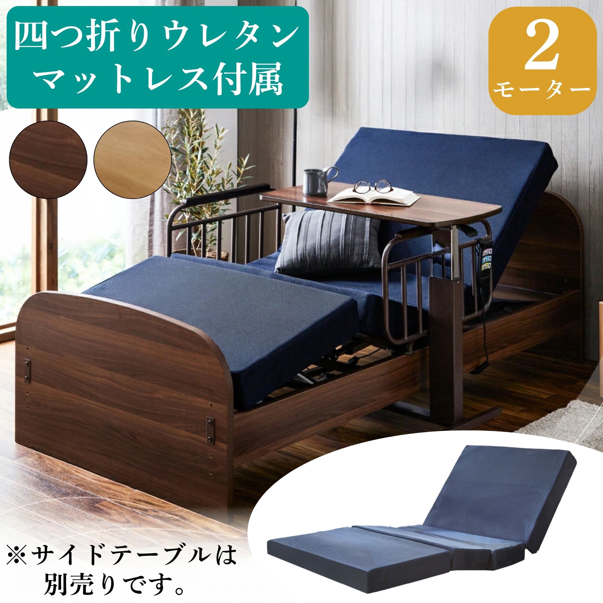 電動ベッド 2モーター 家庭用 介護用ベッド シングル フレーム+マットレスセット 手すり付 リクライニングベッド 高さ調節 リモコン操作 メッシュ 四つ折り