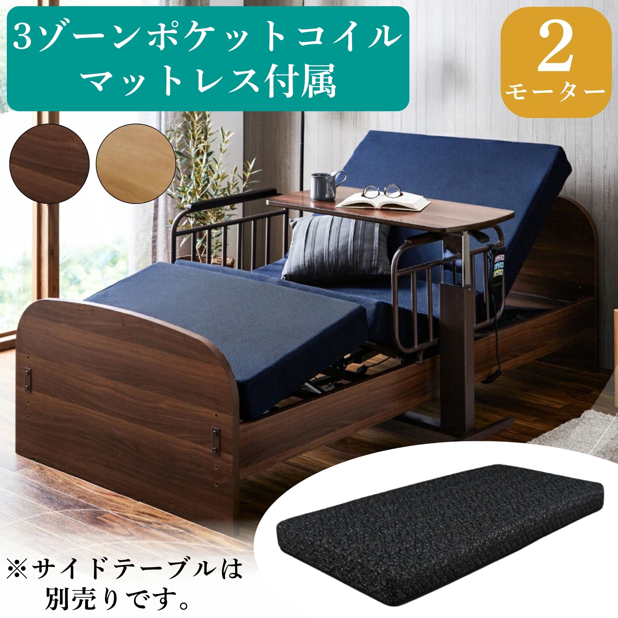 背部と足部が別々に動かすことが可能な2モーター式電動ベッド