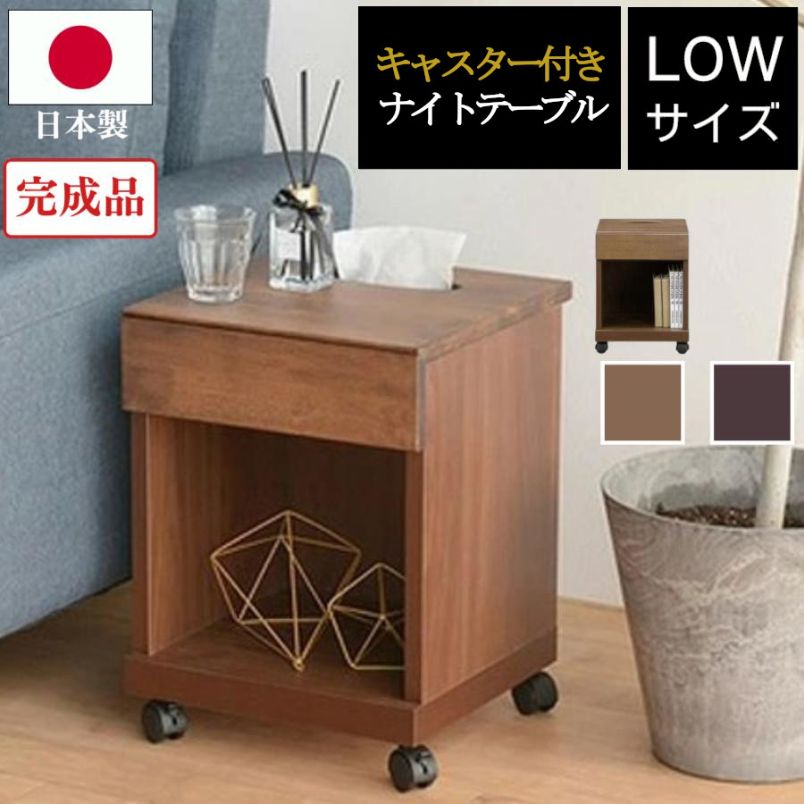 ナイトテーブル サイドテーブル スリム 日本製 国産 天然木 完成品 高さ47 35×35 キャスター ベッド ソファ リビング ロータイプ 引き出し シュシュ chouchou2
