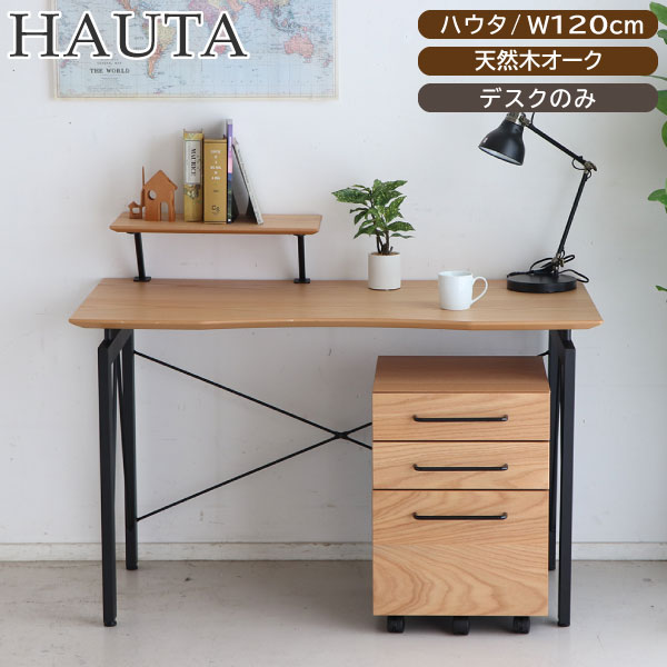 パソコンデスク ハウタ HAUTA 幅120cm オーク 突板 天然木 棚付き 収納 スチール脚 シンプル モダン ナチュラル 机 北欧調 幅広 ワイド プリンター台 おしゃれ