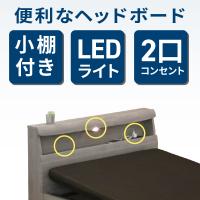 ◆ベッドボード/宮付き、LEDライト付き、2口コンセント付きです。