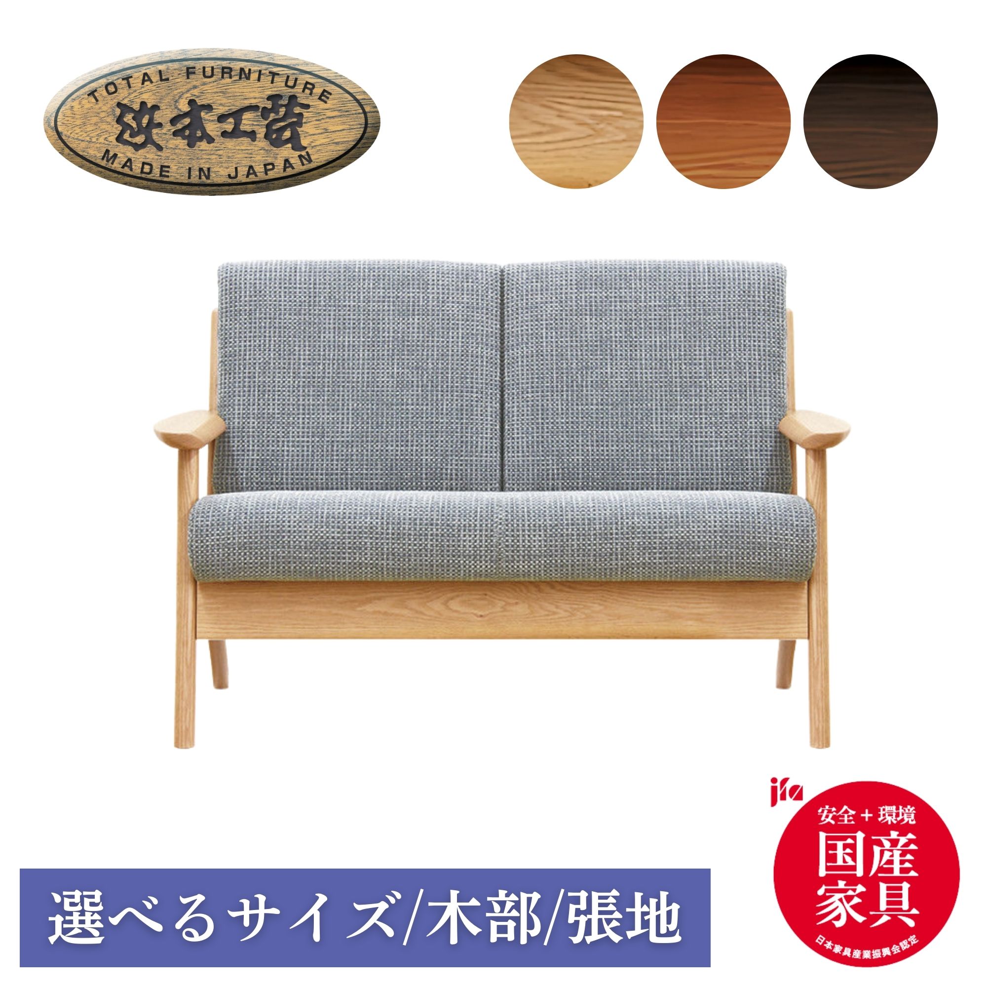 【開梱設置付】浜本工芸 No.3900 2人掛け ソファ 5年保証 リビングチェア ソファー コンパクト オーク 日本製 sofa 幅117cm 洗える L-3900 WL-3900 3904 3908