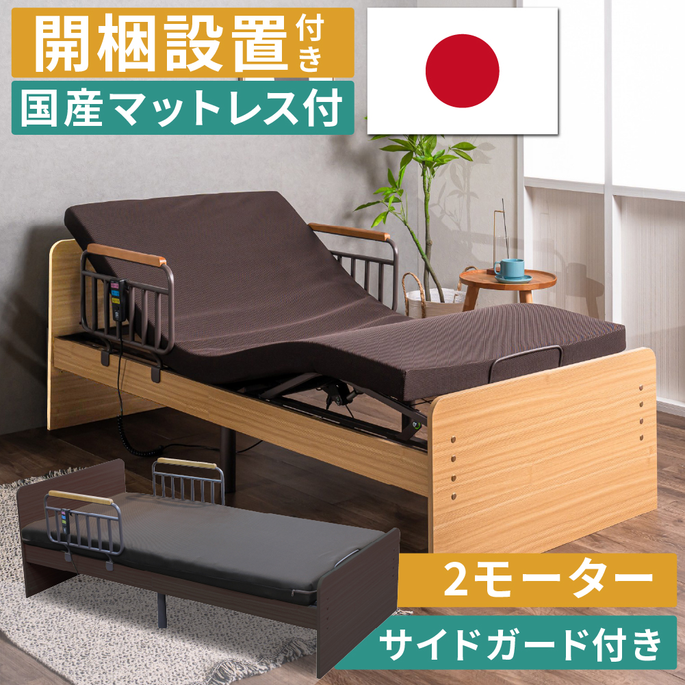 介護用ベッド 家庭用 自宅用 フレーム+マットレスセット 手すり付 リクライニングベッド リモコン操作 マット付 ナチュラル ブラウン 組立てあり single bed set hospital bed for home シングルベッド 楽 配送員設置 組立設置 おしゃれ シンプル リモコン式 リモコン付き 柵 シングルサイズ 手軽 専門業者 リクライナー electric reclining bed 人気 おすすめ おしゃれ ランキング インスタ映え インスタ インスタグラム Instagram