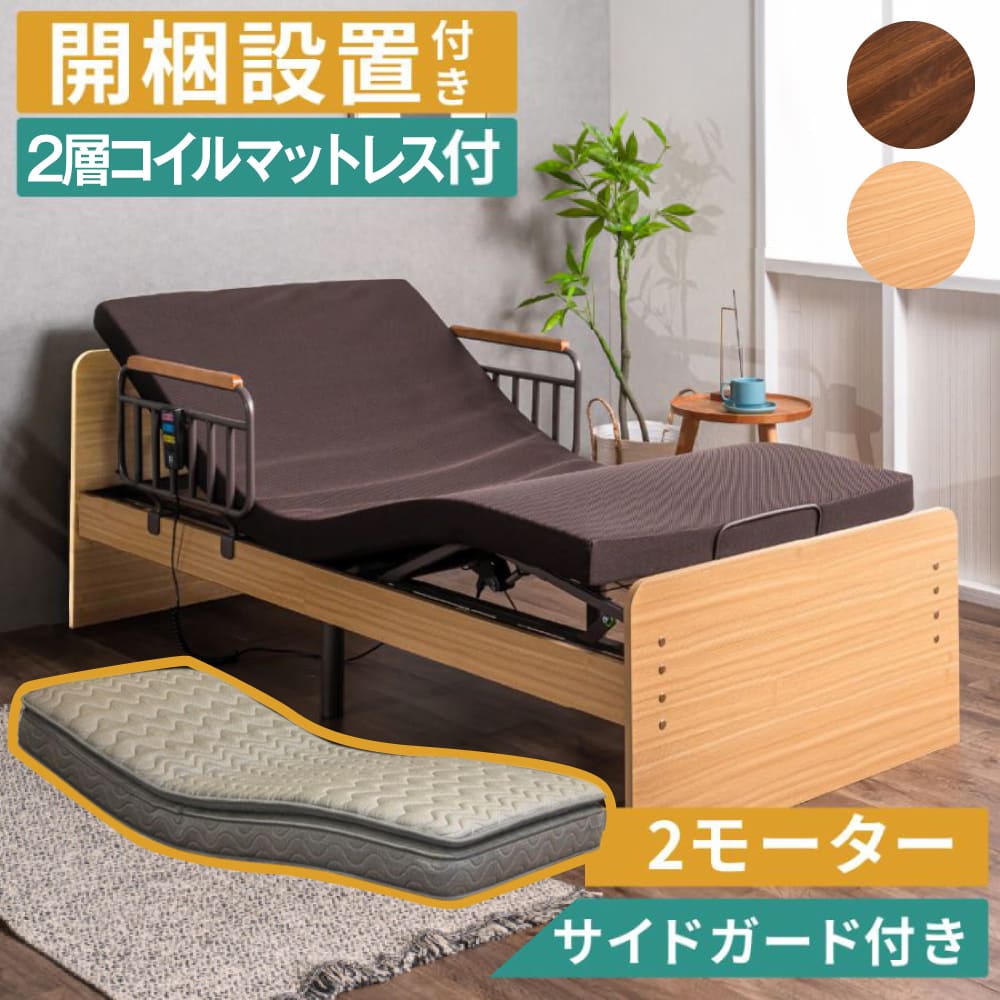 介護用ベッド 家庭用 自宅用 フレーム+マットレスセット 手すり付 リクライニングベッド リモコン操作 マット付 ナチュラル ブラウン 組立てあり single bed set hospital bed for home シングルベッド 楽 配送員設置 組立設置 おしゃれ シンプル リモコン式 リモコン付き 柵 シングルサイズ 手軽 専門業者 リクライナー electric reclining bed 人気 おすすめ おしゃれ ランキング