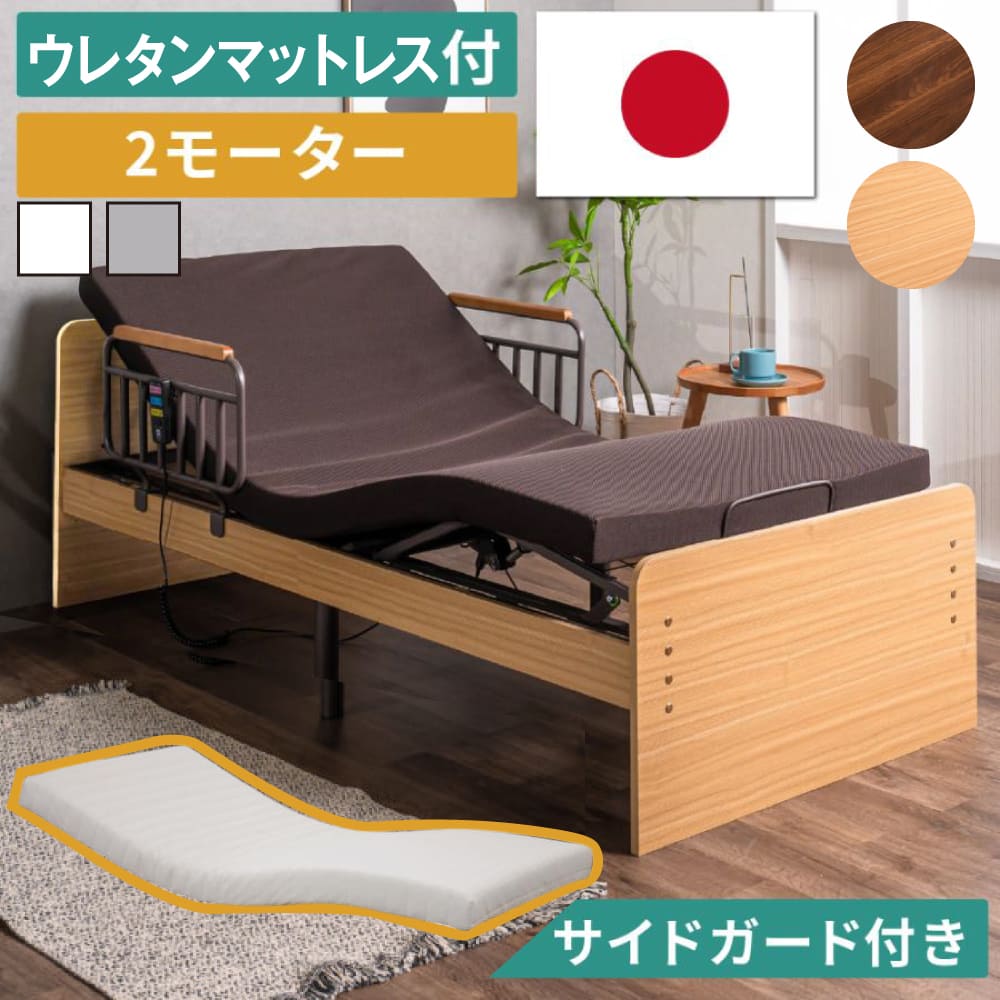 介護用ベッド 家庭用 自宅用 フレーム+マットレスセット 手すり付 リクライニングベッド リモコン操作 マット付 ナチュラル ブラウン 組立てあり single bed set hospital bed for home シングルベッド 楽 配送員設置 組立設置あり シンプル リモコン式 リモコン付き 柵 シングルサイズ 手軽 専門業者 リクライナー electric reclining