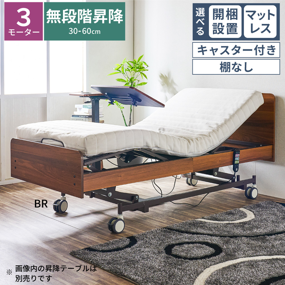 選べる 開梱設置 電動ベッド 介護ベッド 昇降式 3モーター キャスター付き 棚なし MFB-1203UF リクライニング マットレス 手すり サイドガード リモコン