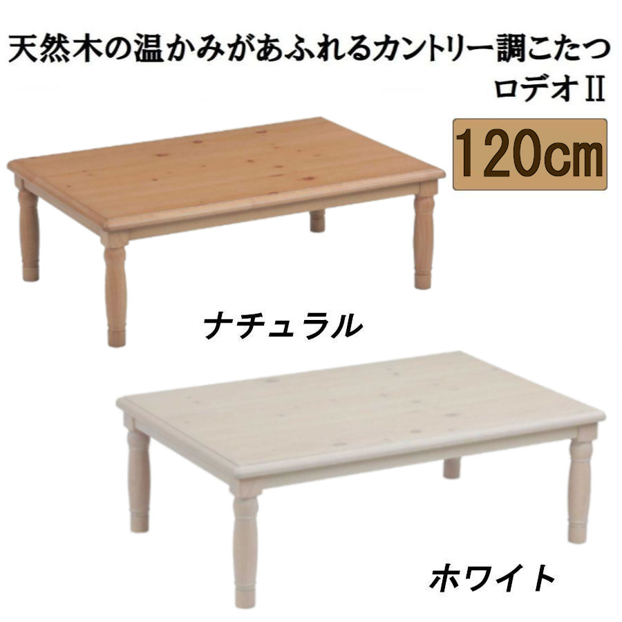 こたつ テーブル ロデオII 幅120cm 家具調 コタツ カントリー調 パイン 天然木 リビングテーブル センターテーブル ロクロ脚 木目 洋風 白 ホワイト ナチュラル