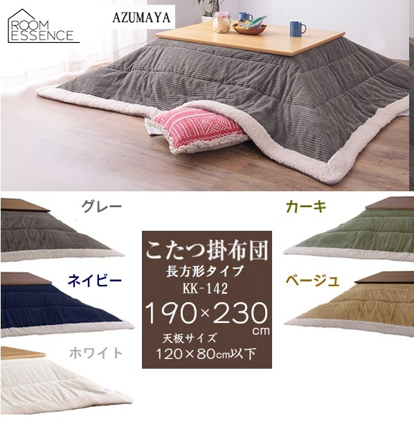 こたつ布団 長方形 KK-142 W190×D230 東谷 AZUMAYA 薄掛 上掛け シンプル 縁取り 北欧 コーデュロイ ボア コタツ布団 掛けふとん おしゃれ